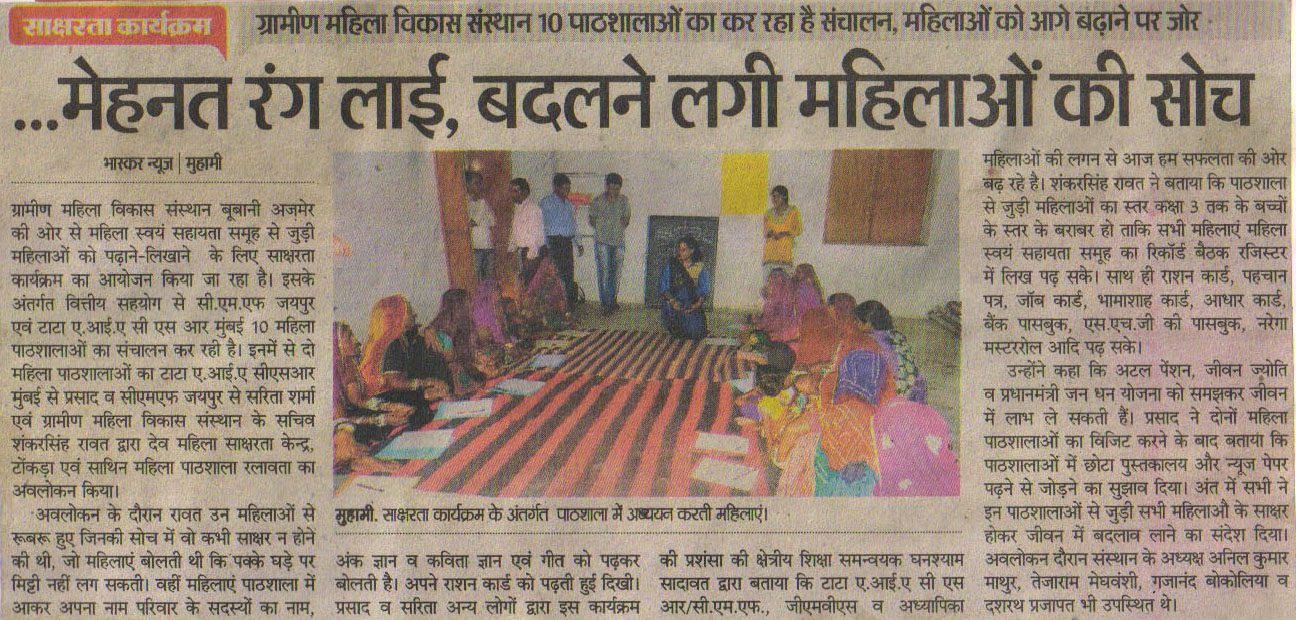 Prasad Jangam from Tata AIA CSR Mumbai and Sarita Sharma from CMF Jaipur visited Dev Liteacy Centre Tonkada and Sathin Mahila Pathshala Ralawata. Gramin Mahila Vikas Sansthan is running 10 such schools for women literacy in villages of Ajmer district with the financial and technical support from these two organisations.
